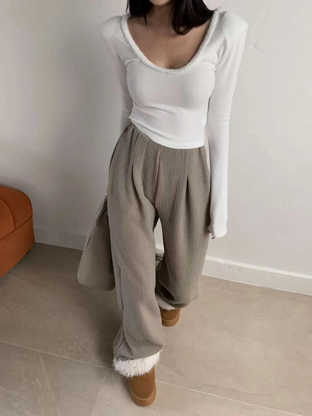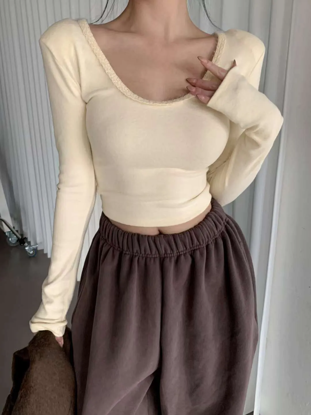 H110冬天必備❗❗毛毛邊U領打底衣(3色)