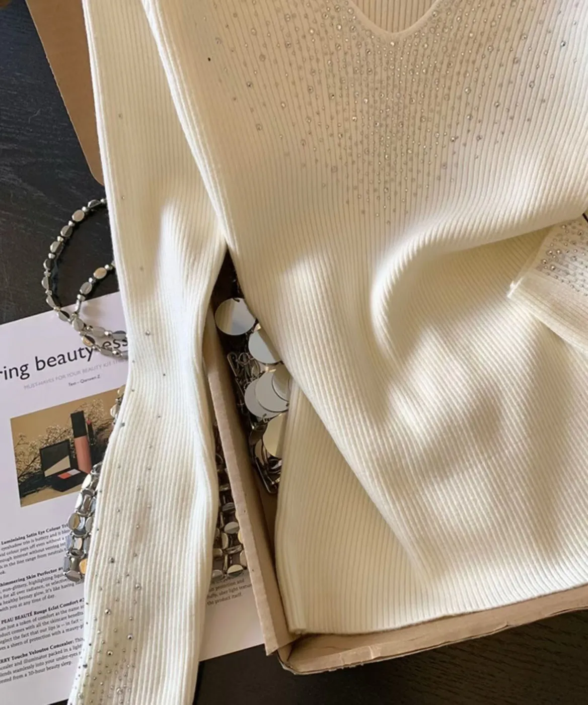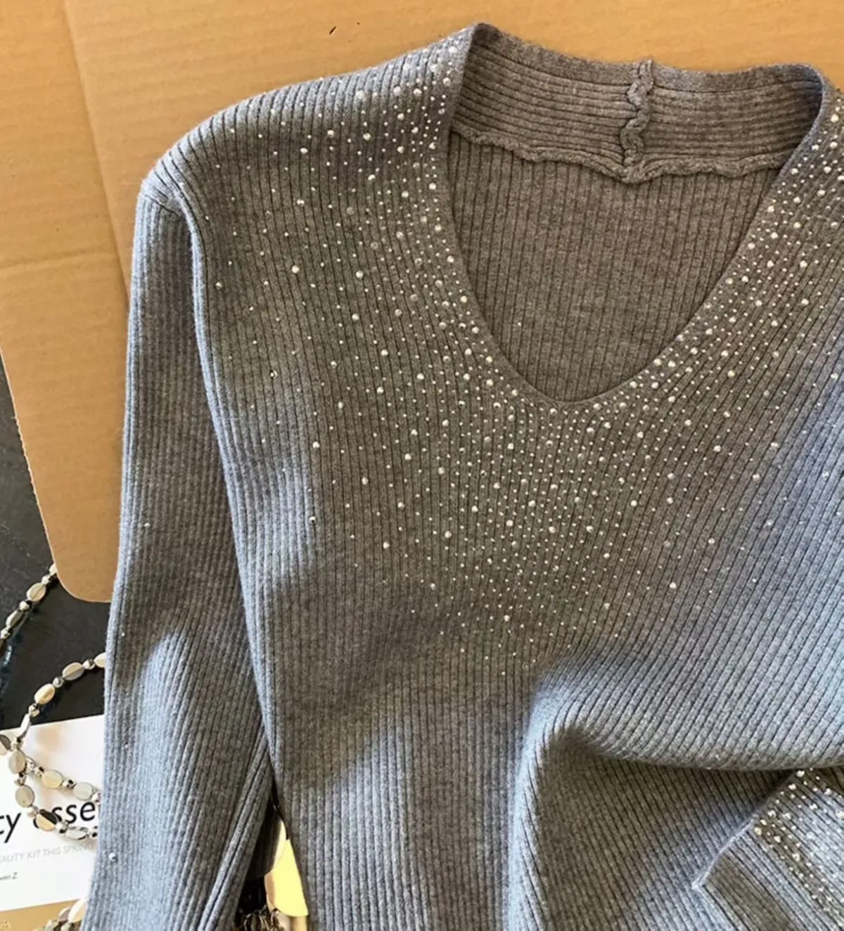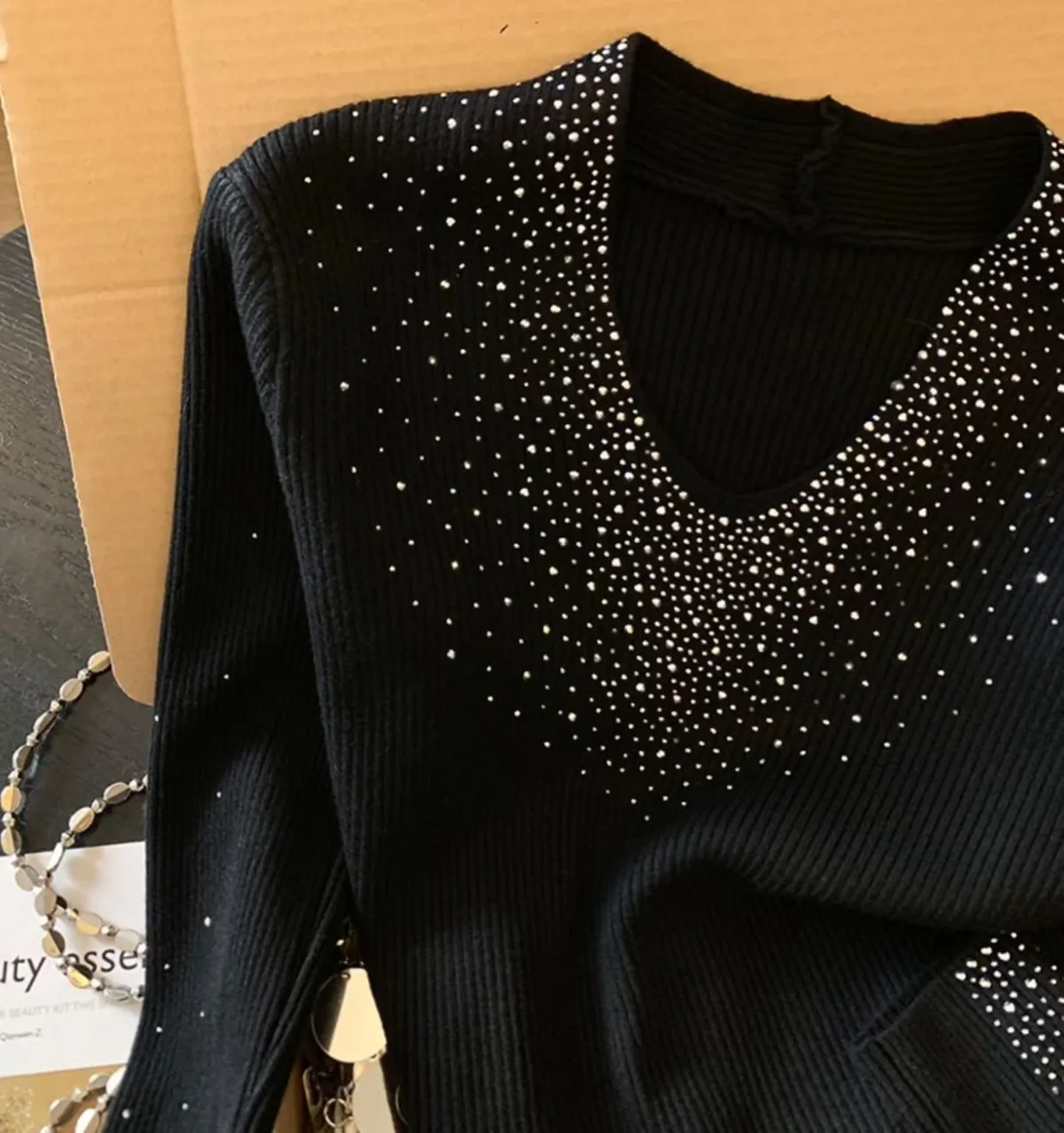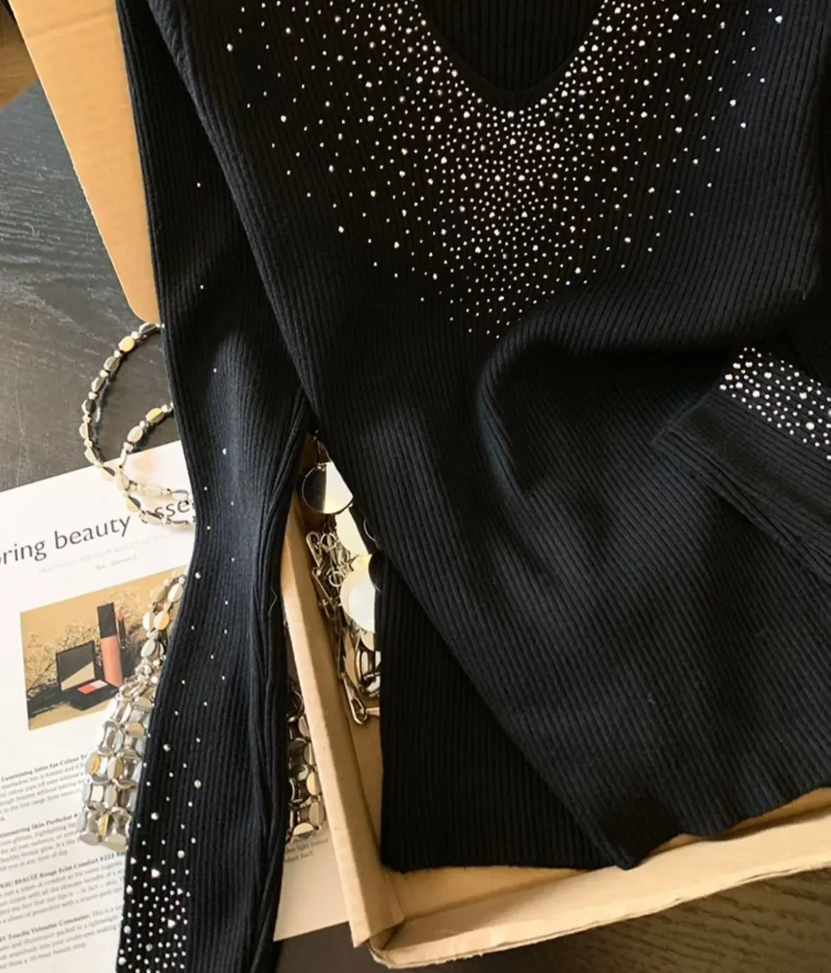 H161重工燙滿天星✨✨V領打底衫(3色)