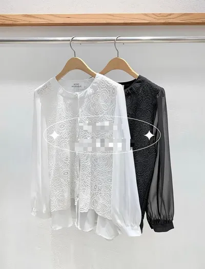 H190微透緹花混雪紡襯衫(2色)