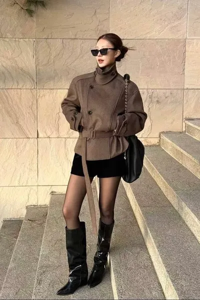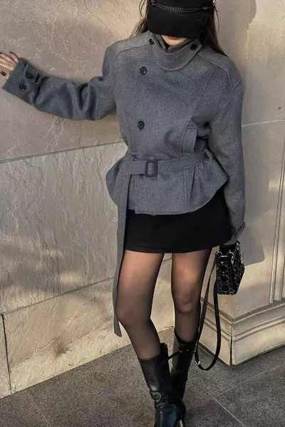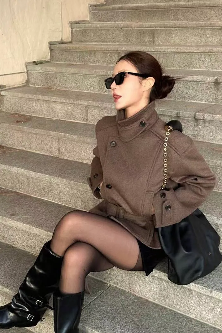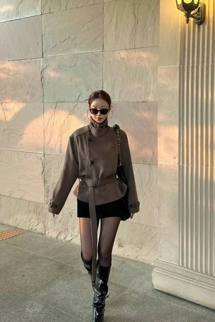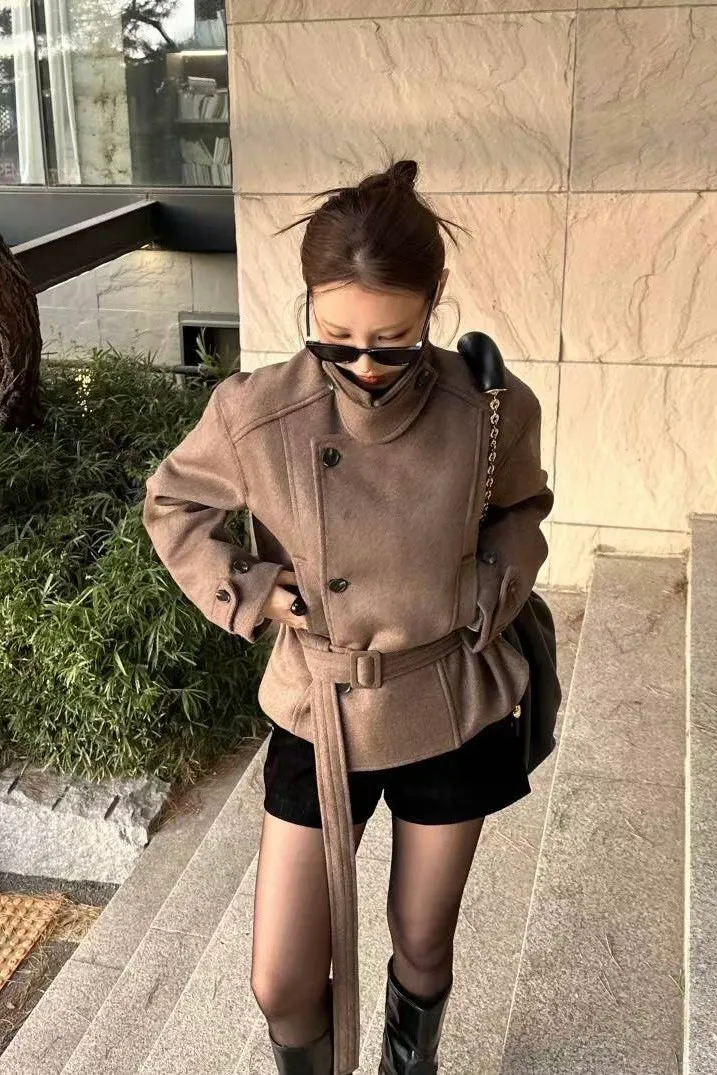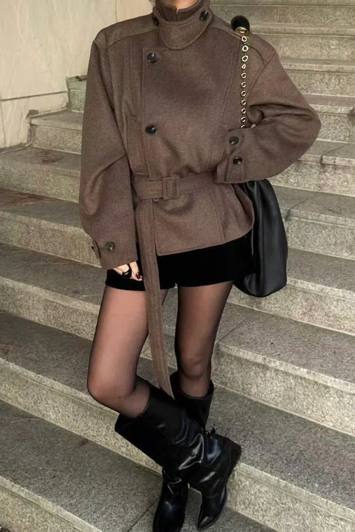 H27英式老錢風斜排扣綁帶毛呢外套(2色)