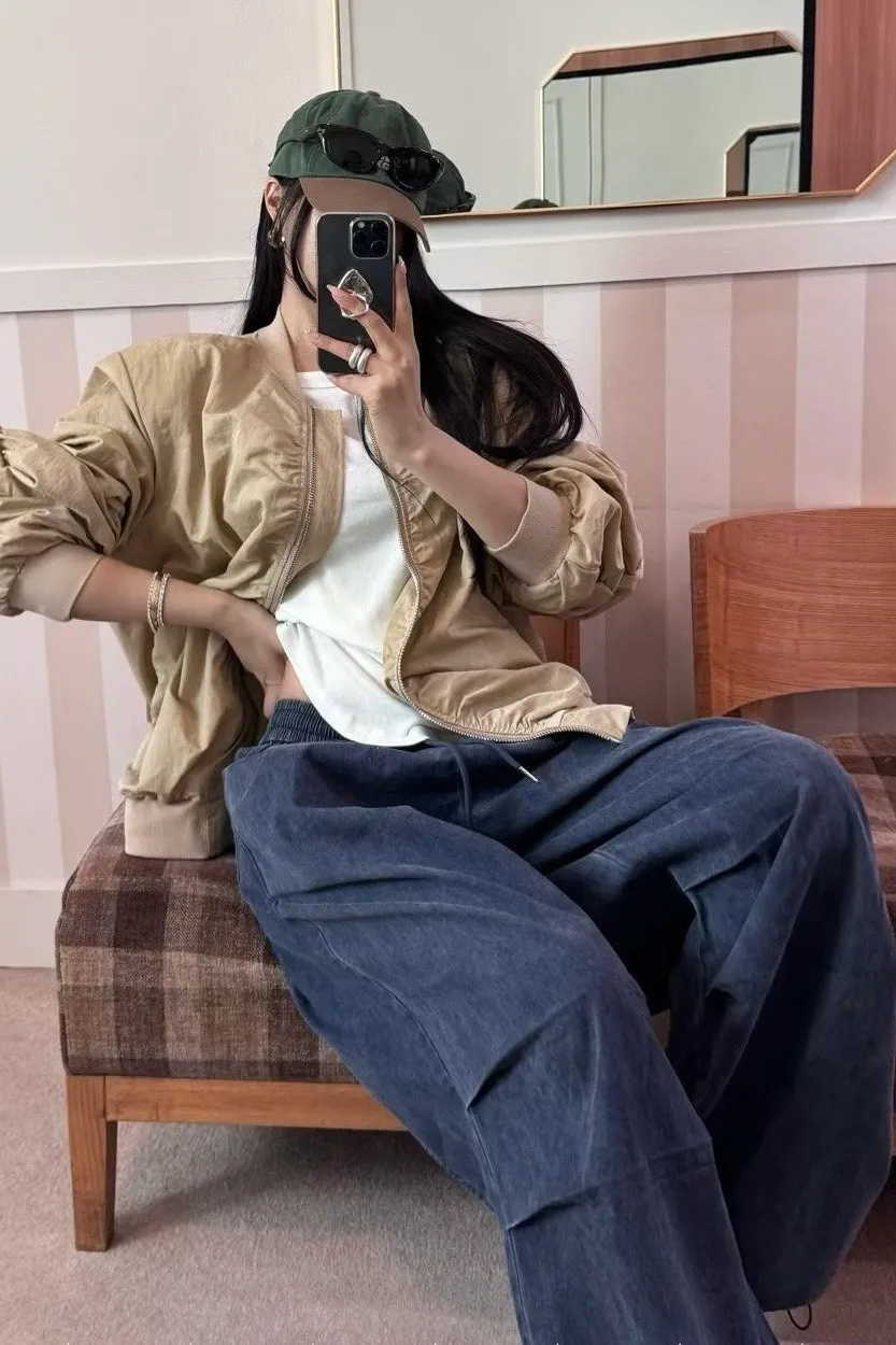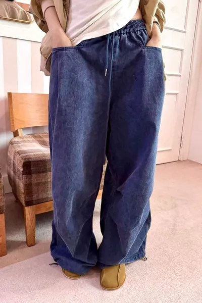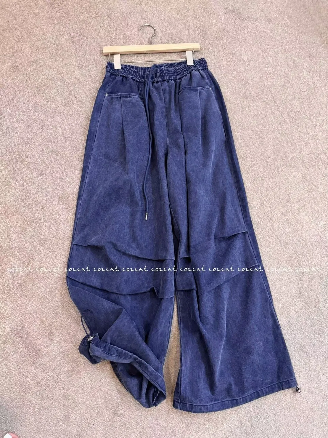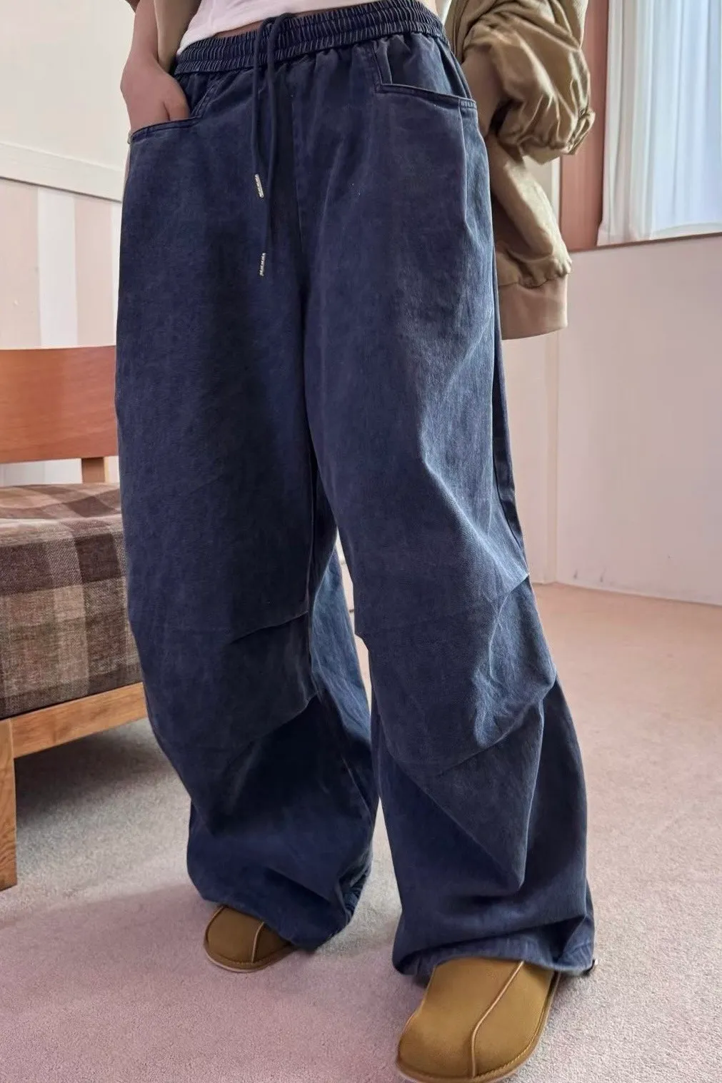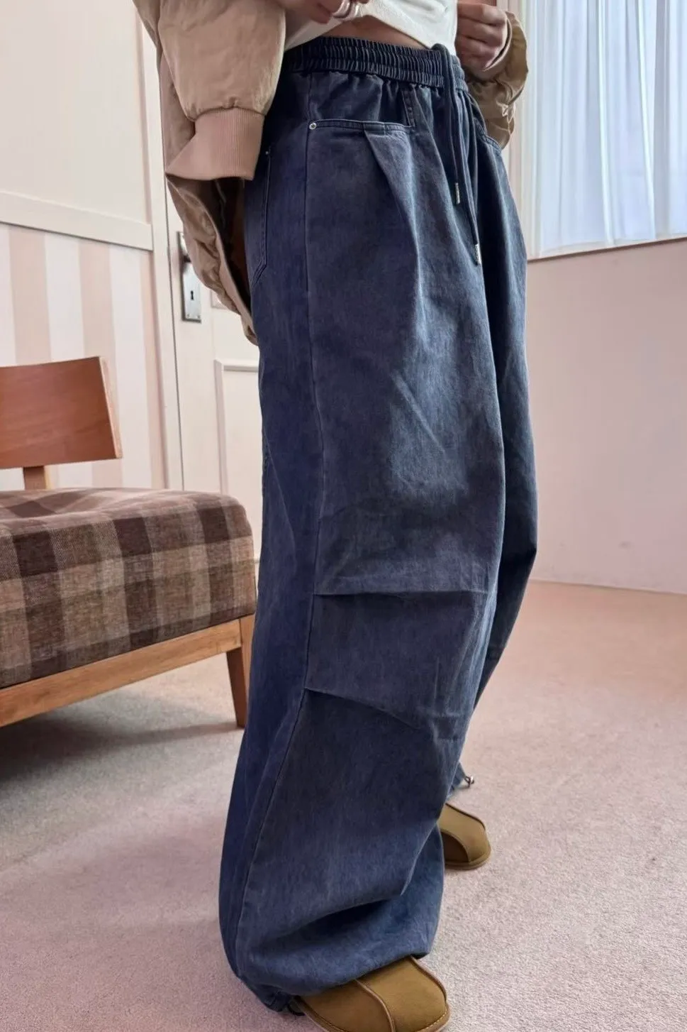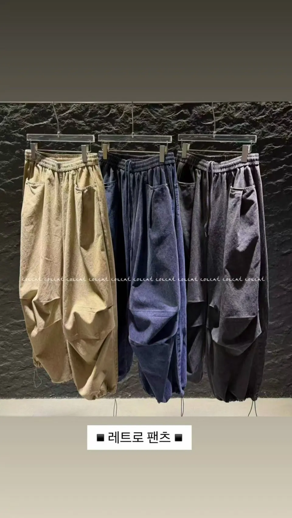 H273高磅鬆緊壓折闊腿褲(3色)