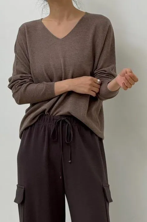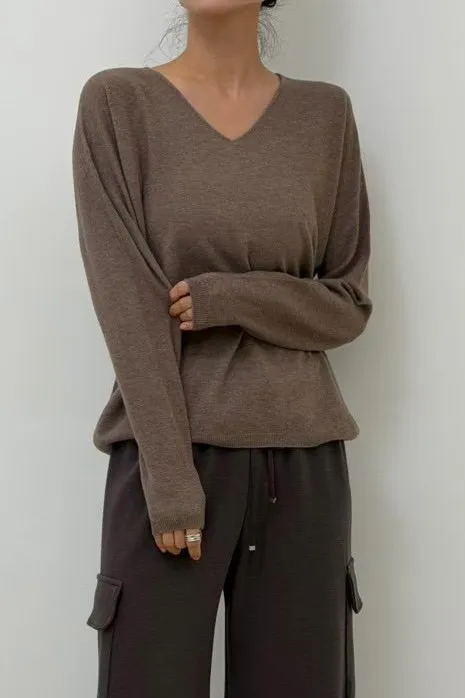 H37溫和懶感V領針織上衣(5色)