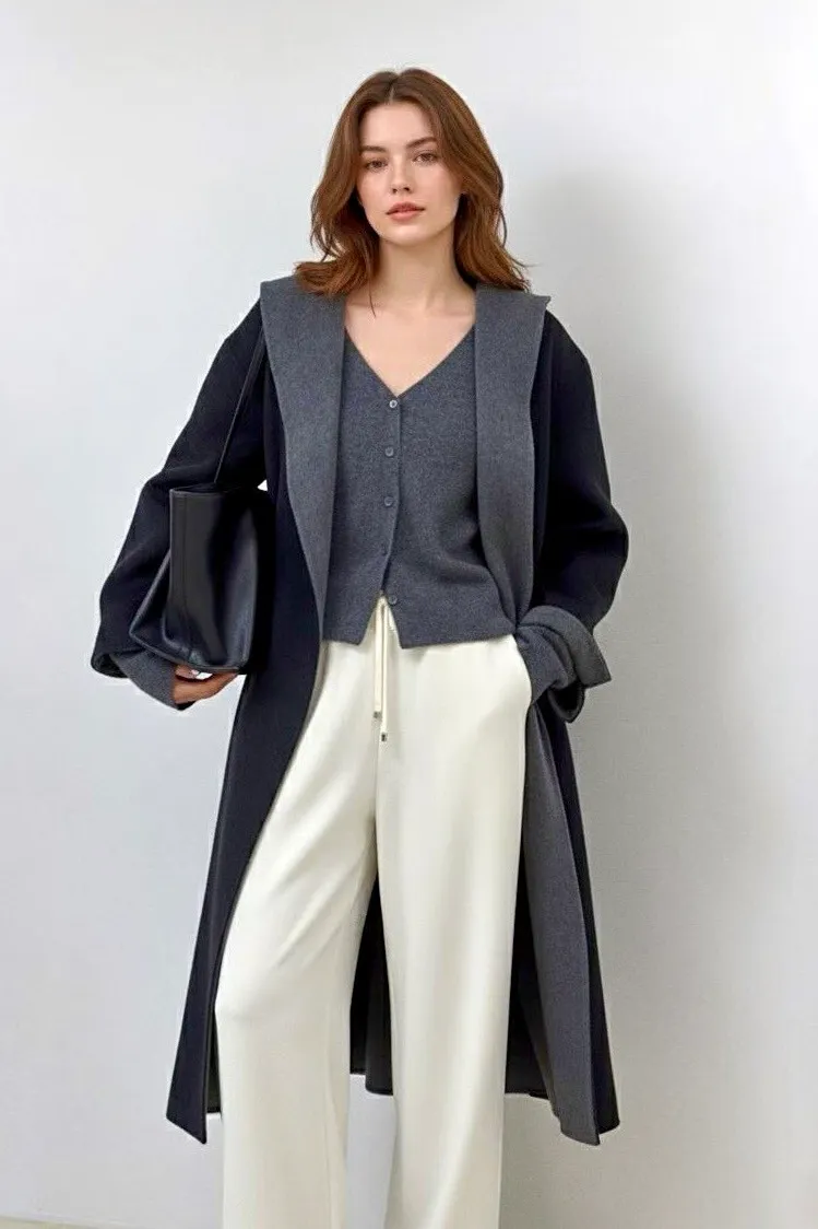 H56撞色連帽雙面羊毛呢西外套(2色)