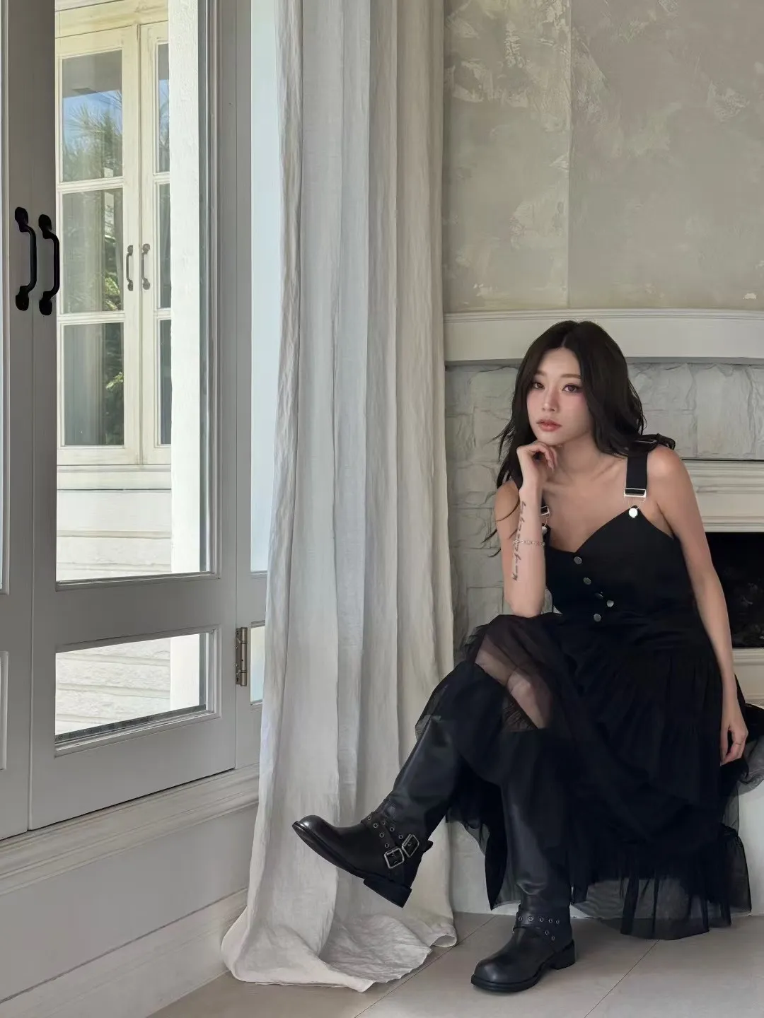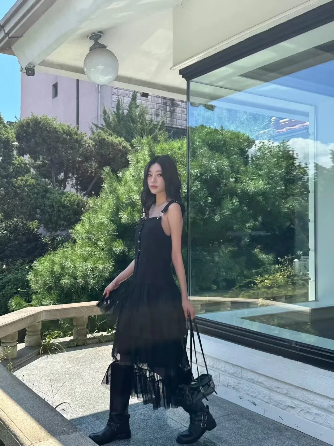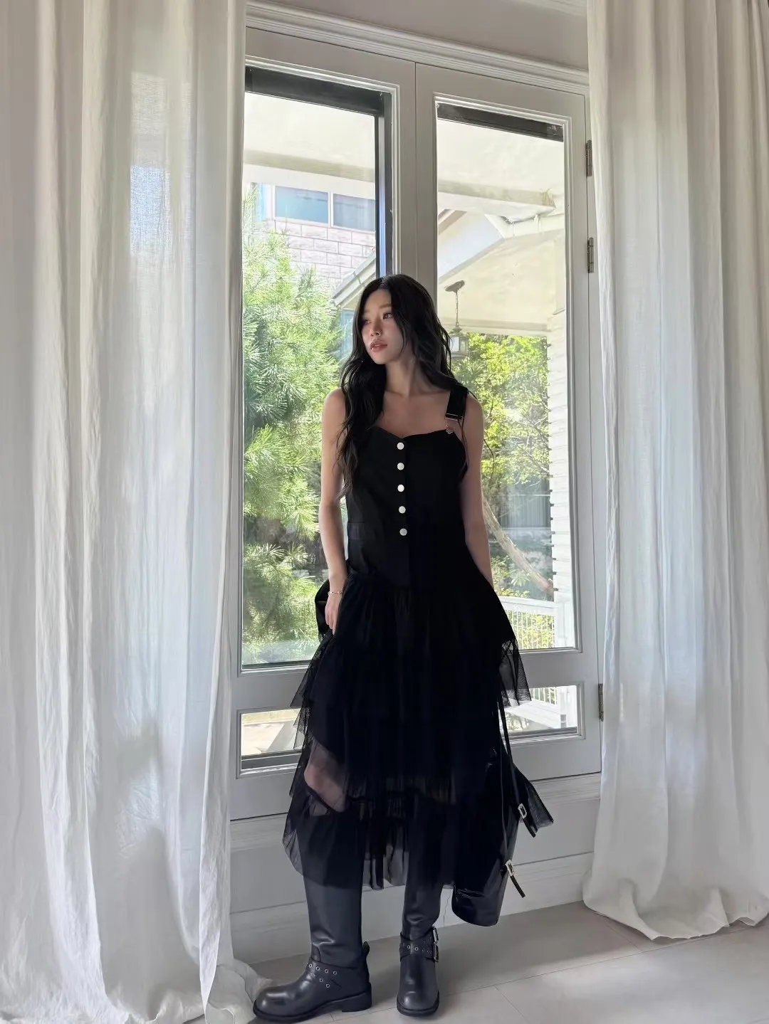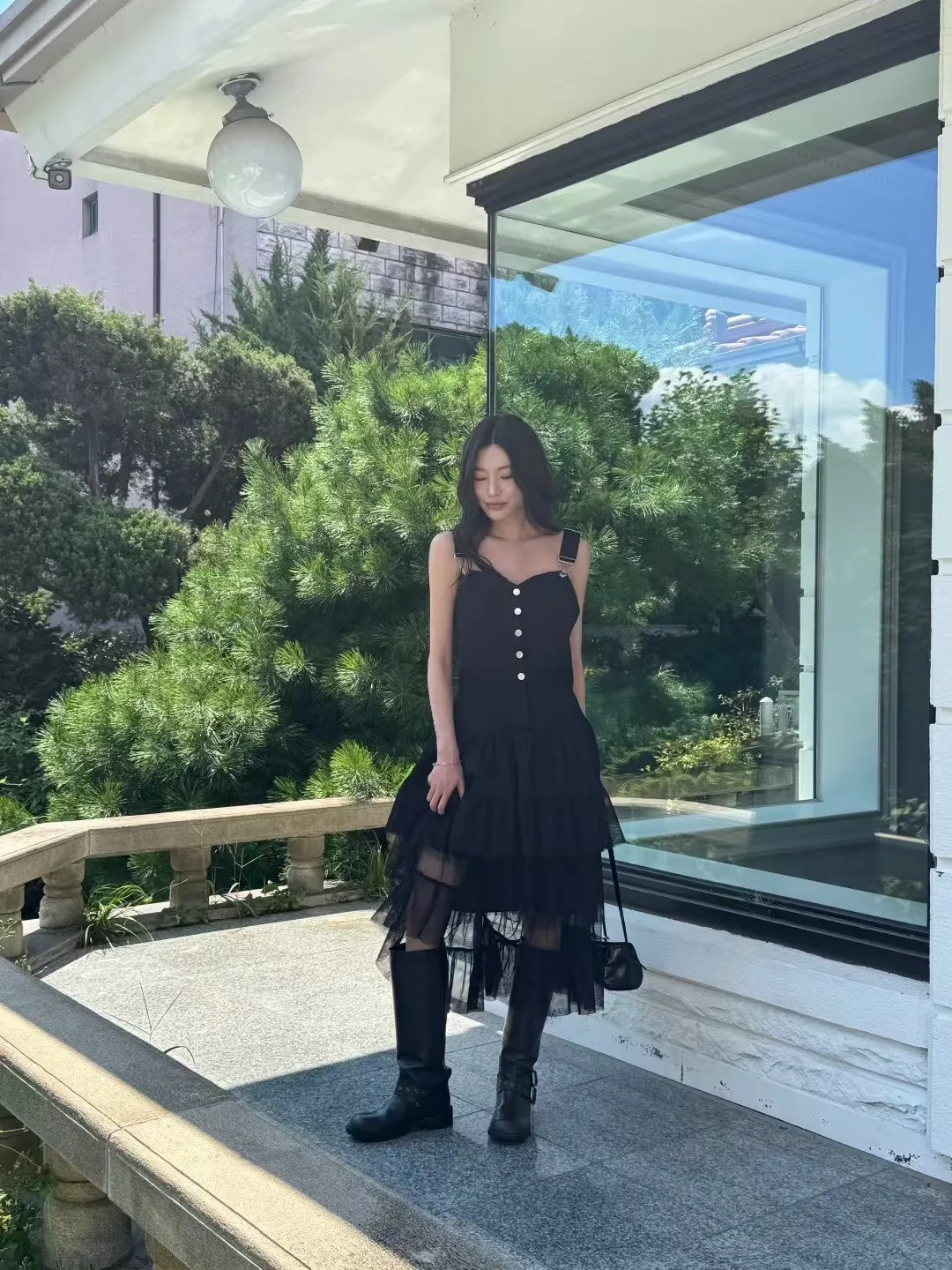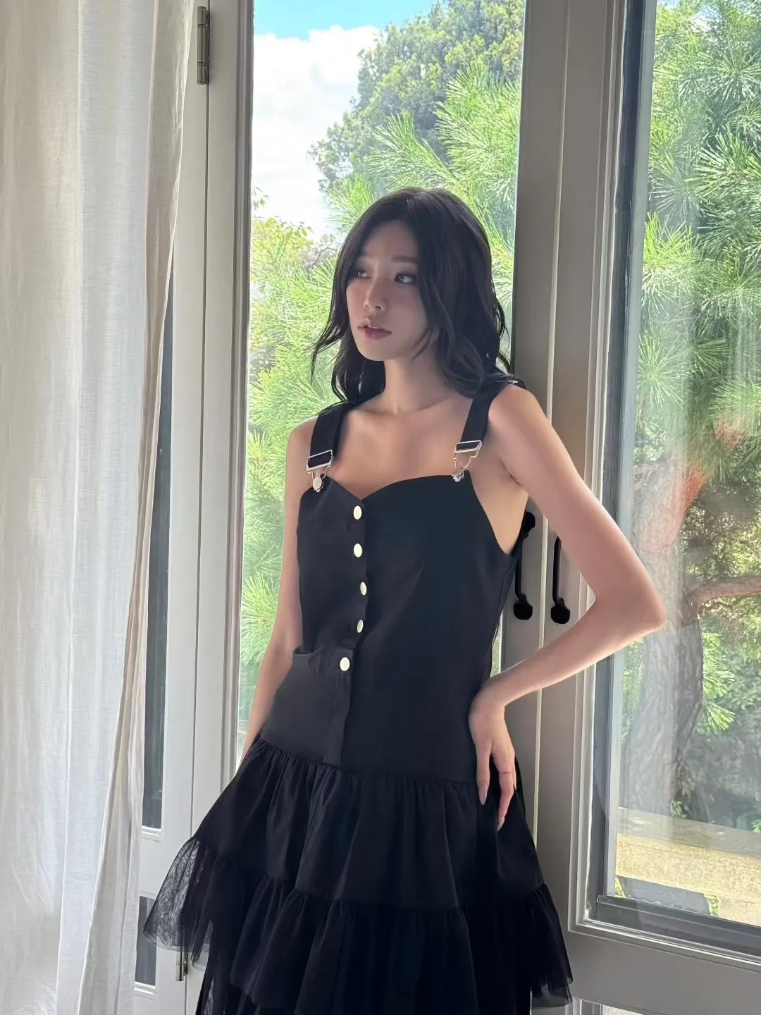 R805黑天鵝透視蕾絲吊帶洋裝(2色)