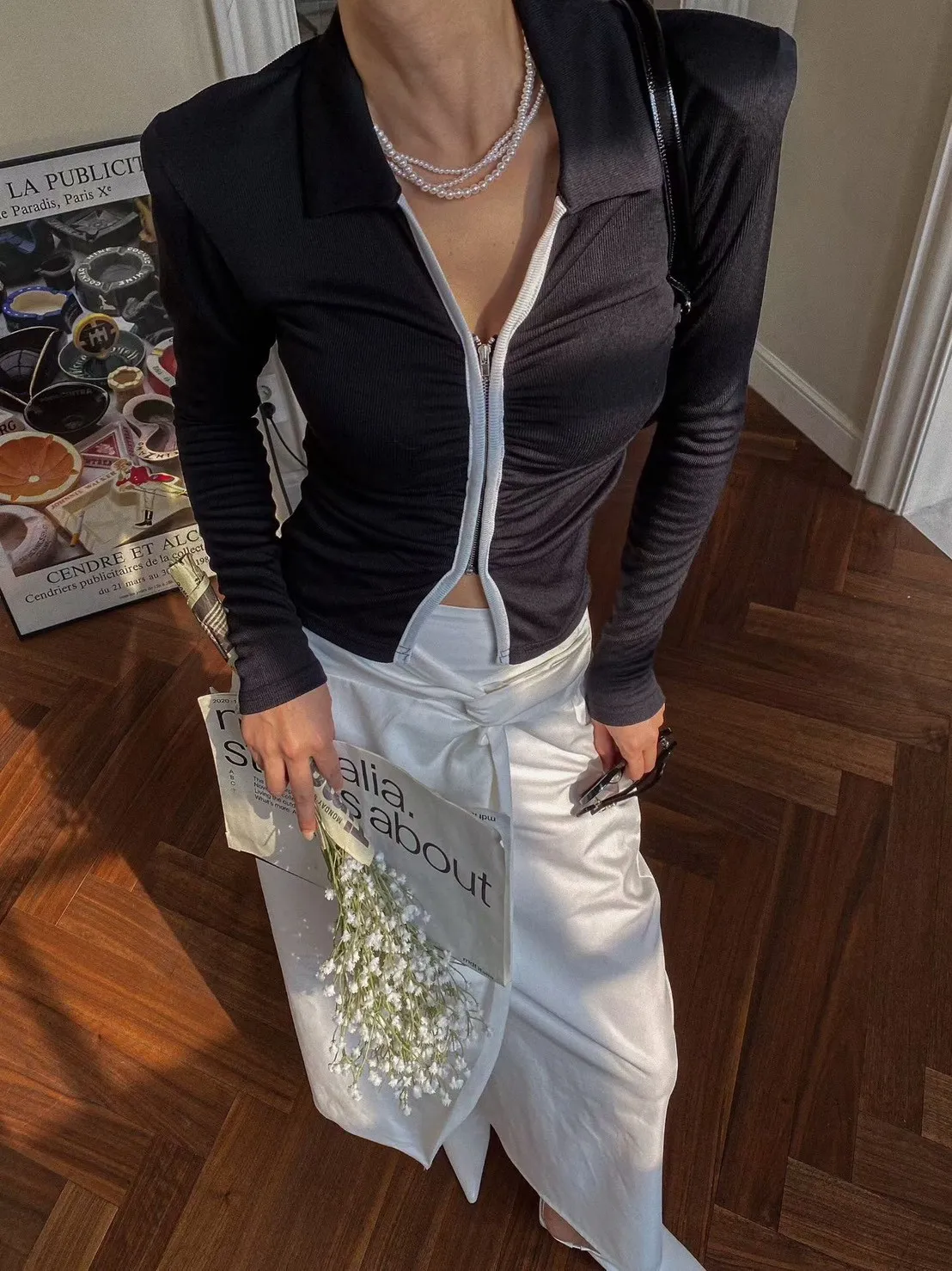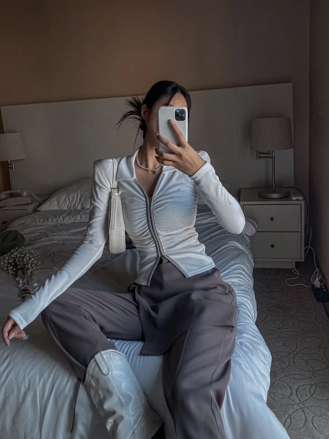 R835韓妞定番滾邊拉鍊上衣(3色)