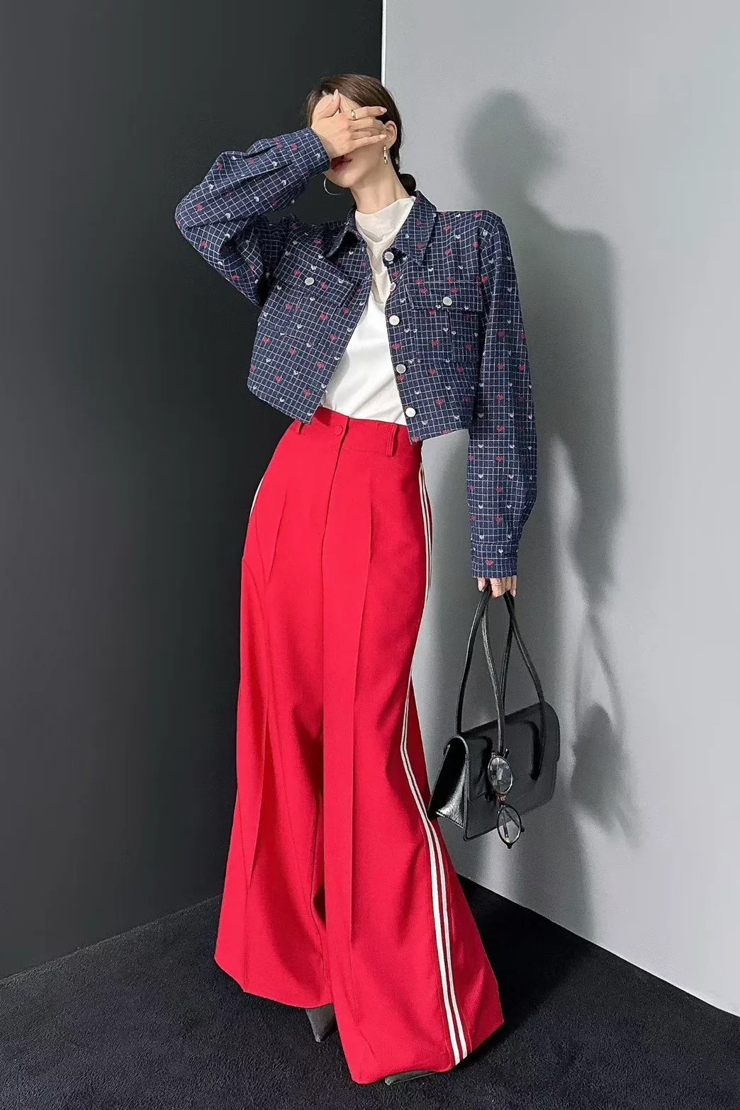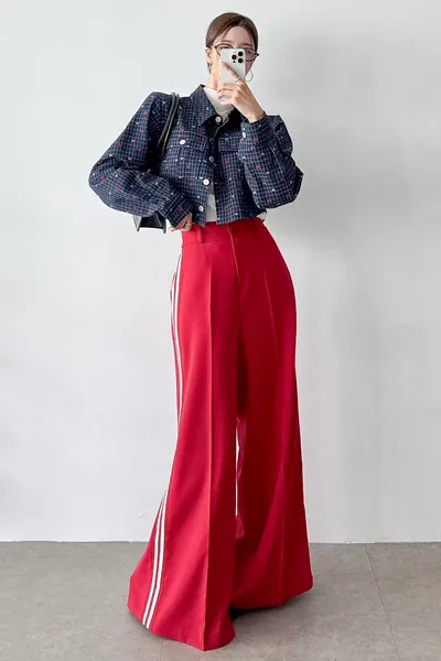 R863潮翻滾邊運動造型闊腿寬褲(2色)