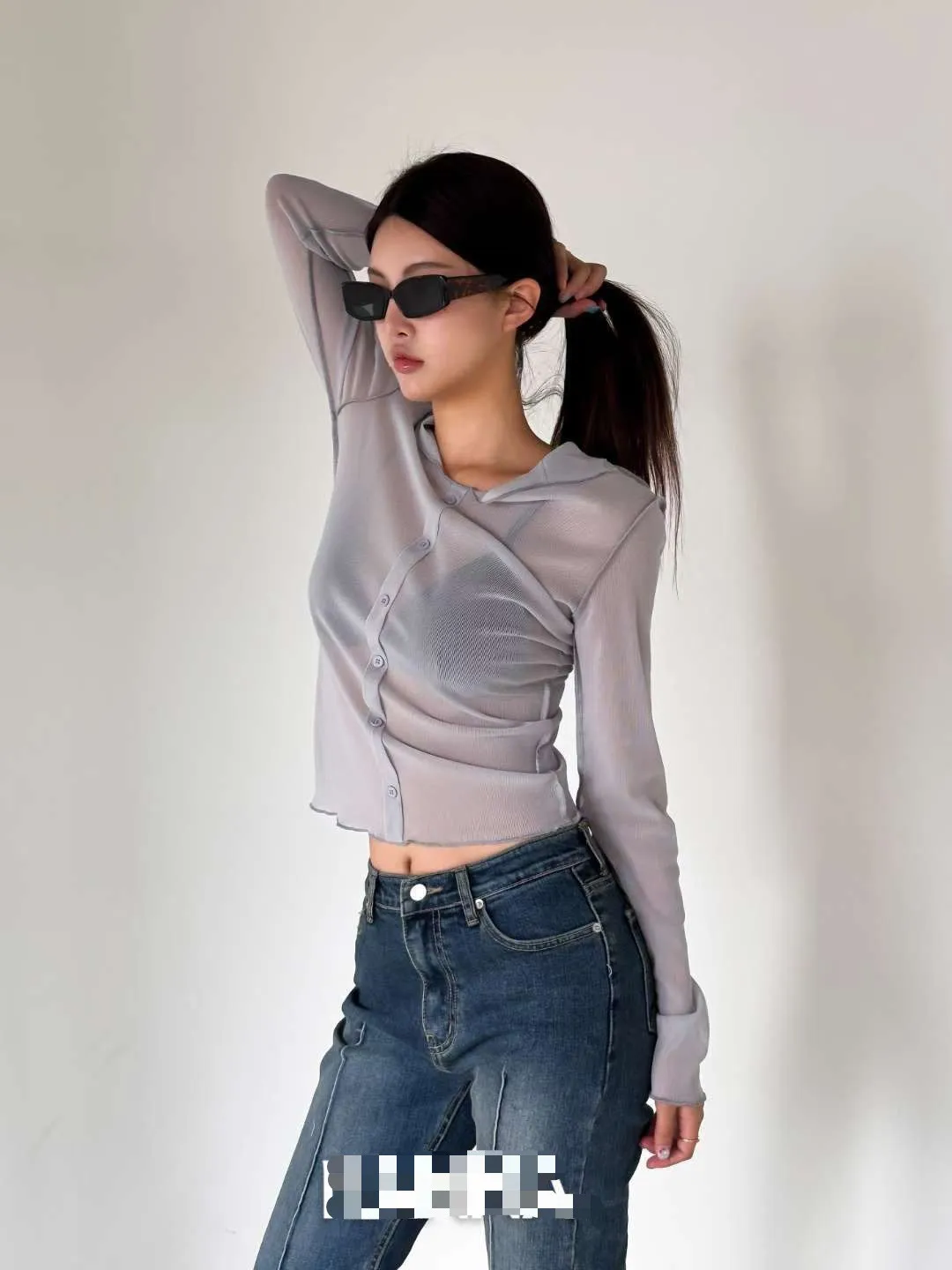 R866酷辣美肌性感透膚貼身上衣(2色)
