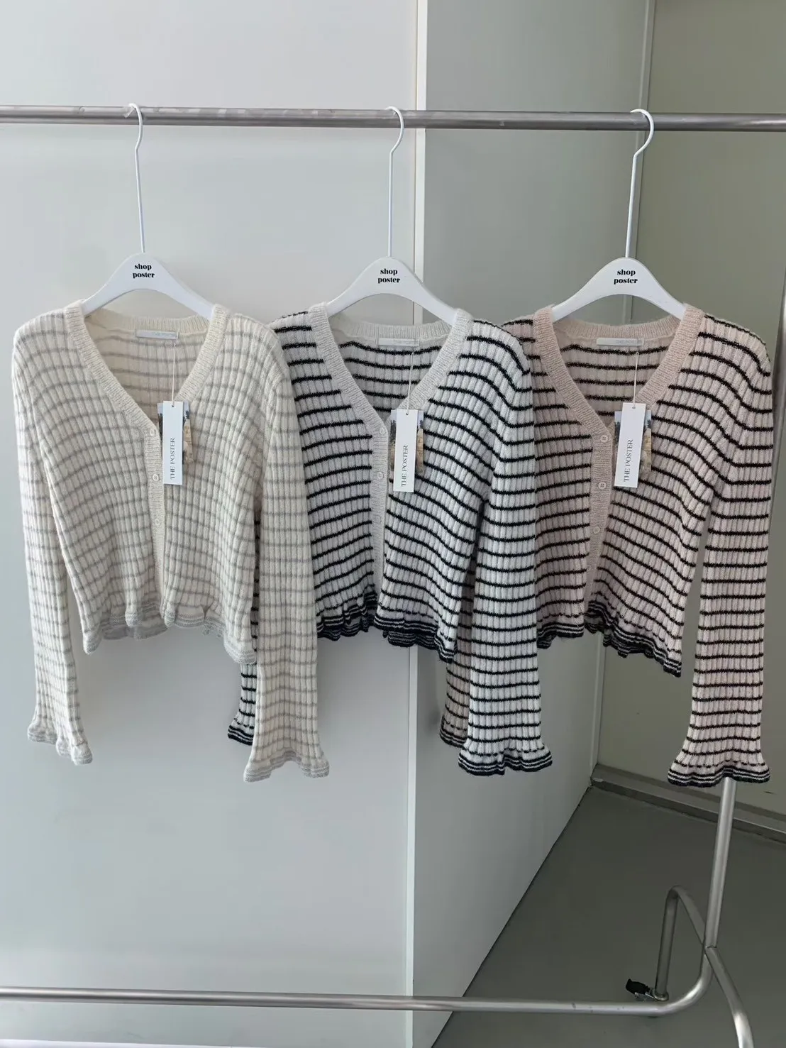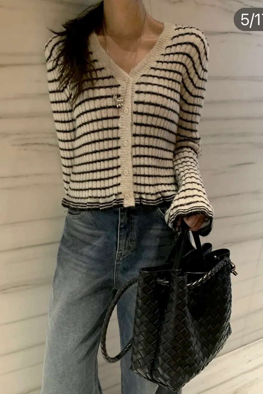 R877童話鬆弛感條紋針織上衣 外罩(3色)