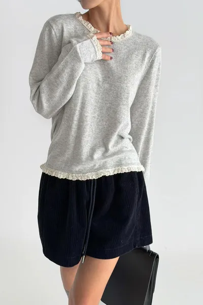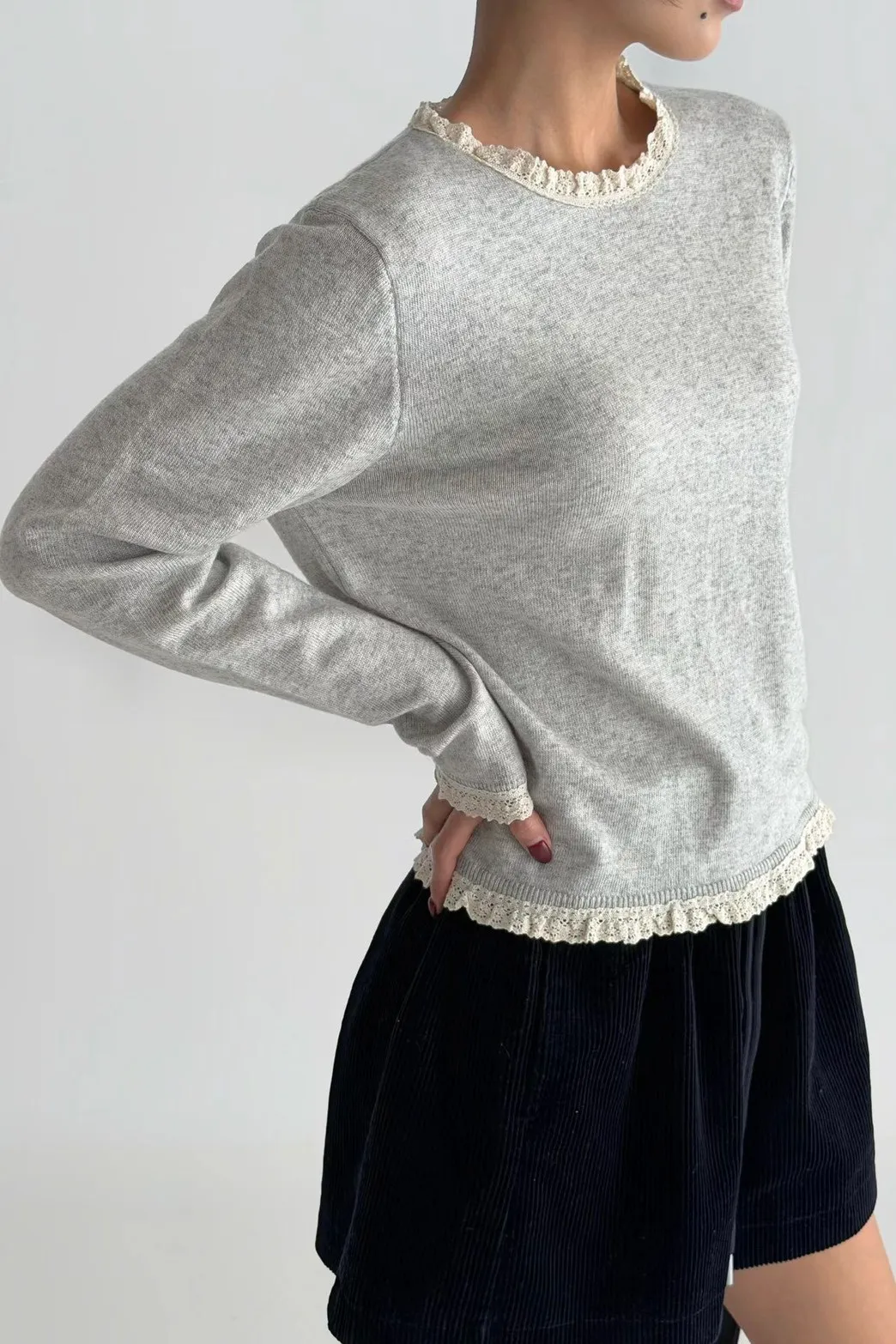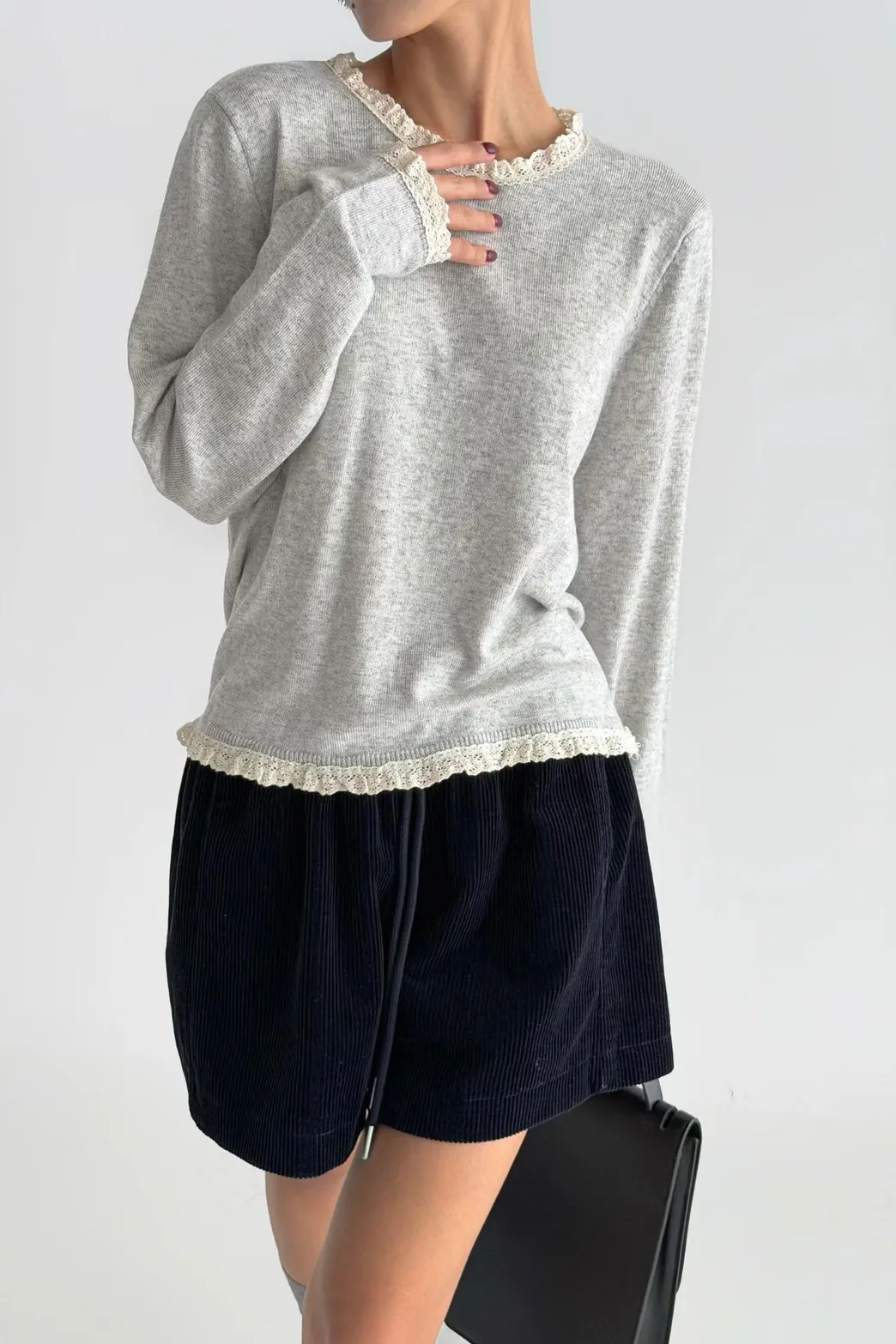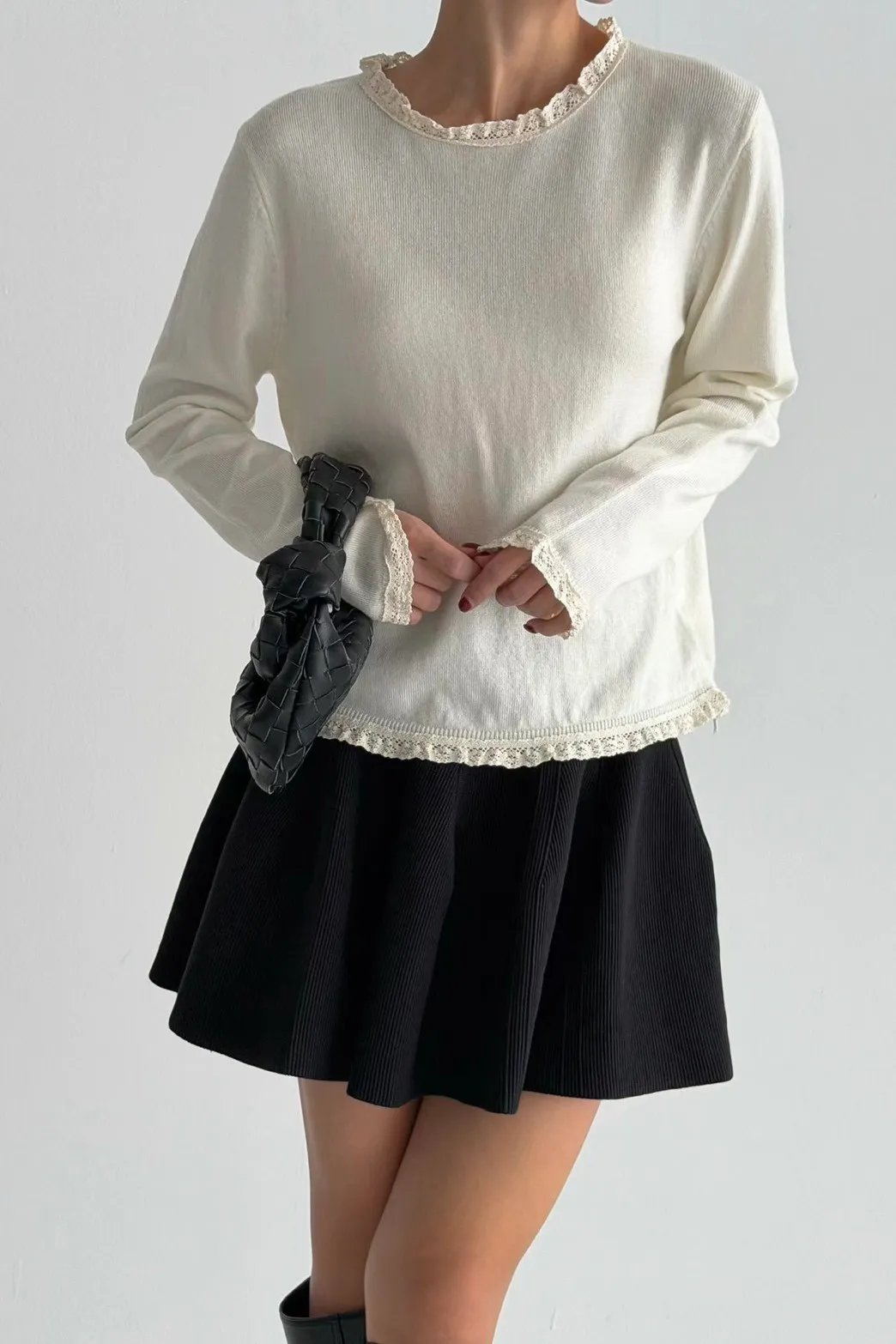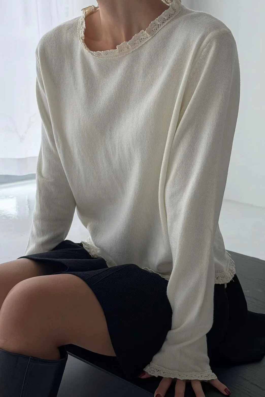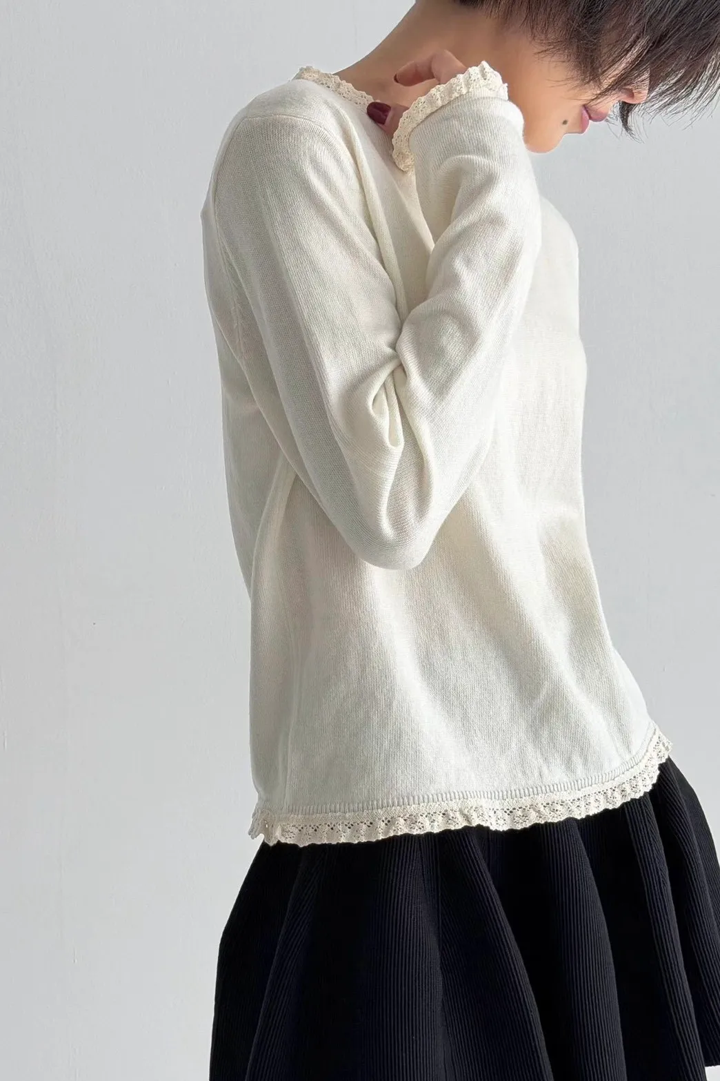 R882奶油蕾絲拼接輕盈感上衣(2色)