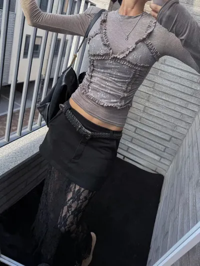R890法式單品假兩件透膚小可愛上衣(2色)